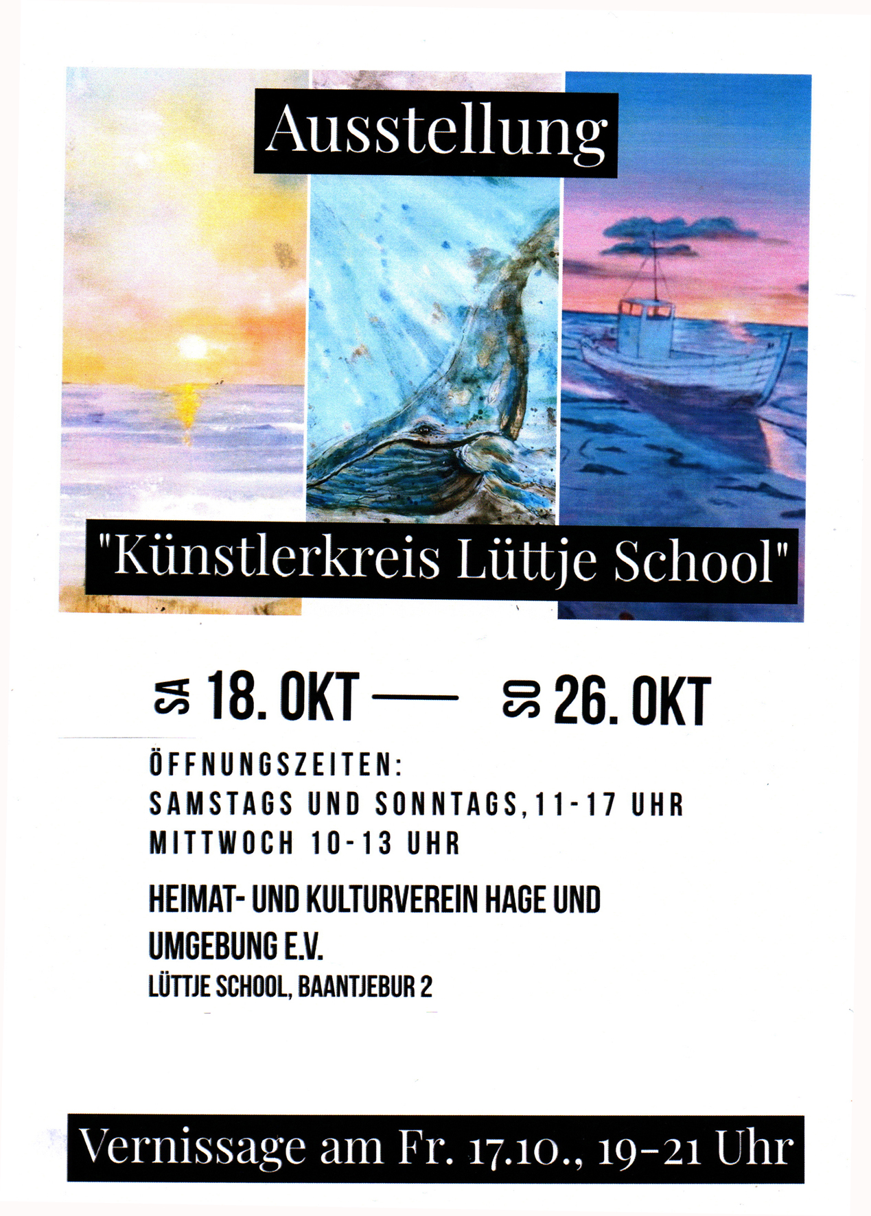 Mittwoch, 15. Oktober um 15 Uhr Vernissage am Freitag, 17. Oktober von 19 - 21 Uhr der "Künstlergruppe Lüttje School"