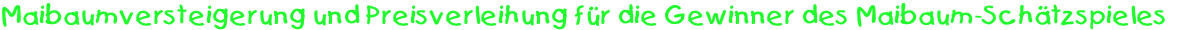 Vier Gewinner des Maibaumschätzespieles erhielten Preise überreicht: Länge des Maibaumes: 12,20 Meter. 1. Preis für Manfredt Boldt (Gutschein gestiftet von Neukauf Kruse, Hage). 2. Preis für Edzard Zitting (Gutschein TAVERNA Hage). 3. Preis für Anja Wunder (Gutschein gestiftet von der KRONE) . 4. Preis für Paul de Buhr (Uhr und Foto)