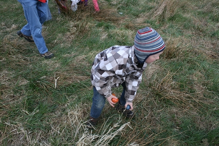 großen Spaß, auf der riesigen Weide die gut versteckten Ostereier zu
