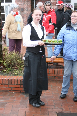 Die nette Kellnerin vom "Friesischen Hof" kommt mit einer Runde Schnaps! |