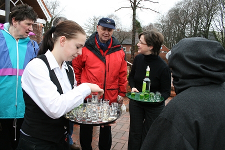 Die Geschäftsführerin vom "Friesischen Hof" stellt sich vor und gibt eine Runde Schnaps aus! |